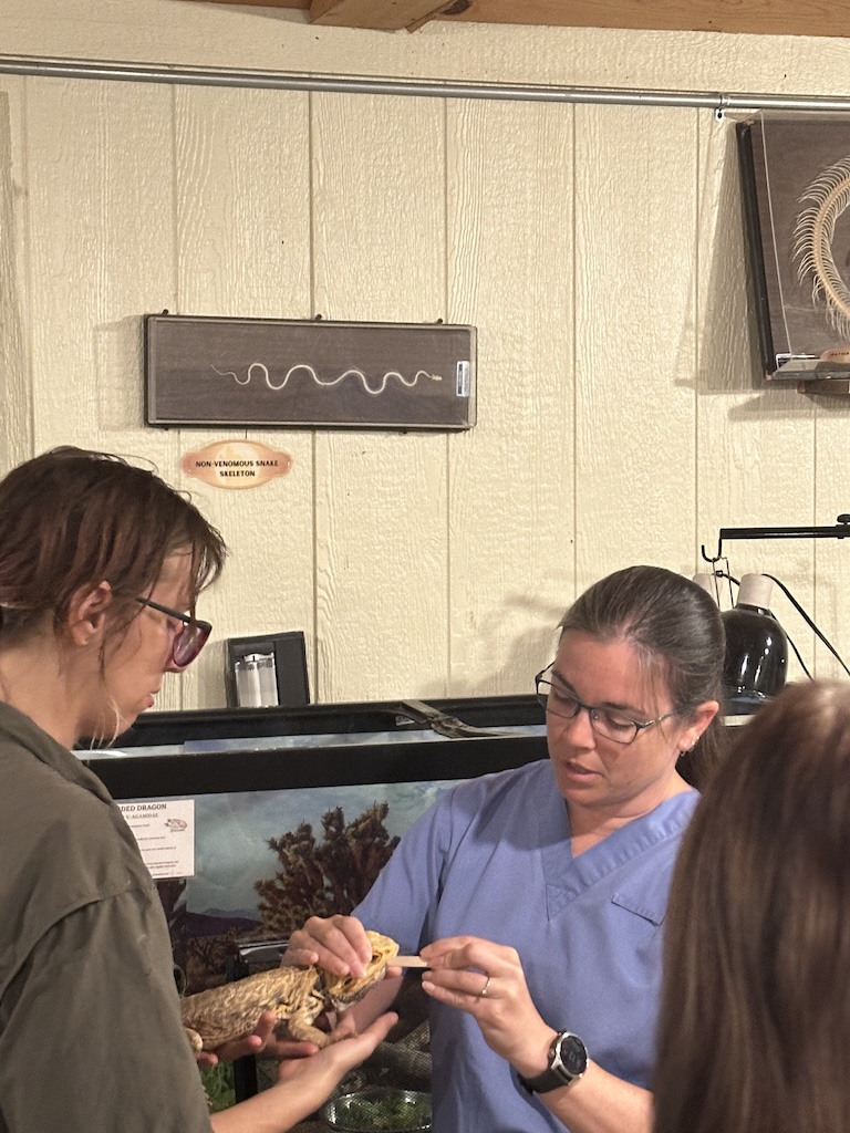 I was one of 3 veterinarians to teach during my two weeks in Texas, and it turned out I was the senior vet of the group, as my colleagues had just had the distinct pleasure of graduating from vet school. Our lectures were divided up amongst us and the labs were taught by us and the zoo staff. For a week students learned about reptiles, mammals and birds, how to suture, give injections (into an orange), and how to do physical exams. They also participated in enrichment projects for the zoo housed animals. It gave them an inside look at a variety of career paths and I was blown away by the creativity and intelligence of the students in the program.